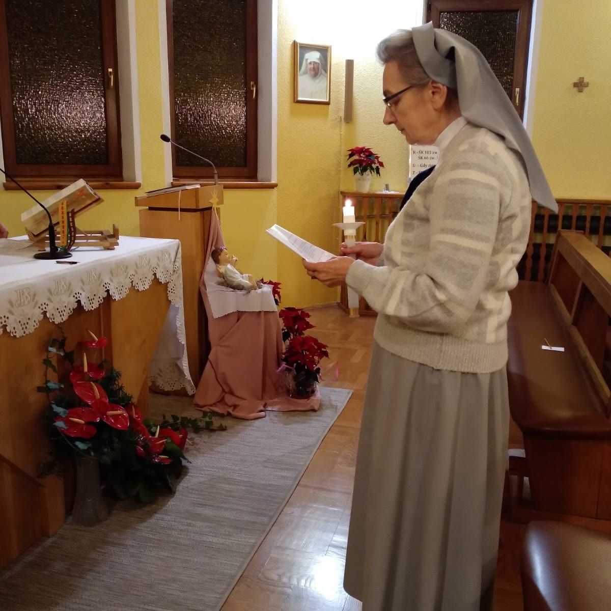 Na zakończenie Eucharystii zostały odczytane życzenia od Siostry Eufemii, które były wyrazem jedności z całym Zgromadzeniem. Pięknie przygotowana liturgia wprowadziła nas w przestrzeń głębokiej modlitwy. Uroczystość zwieńczyła agapa, podczas której w radosnej atmosferze śpiewałyśmy kolędy w różnych językach.
