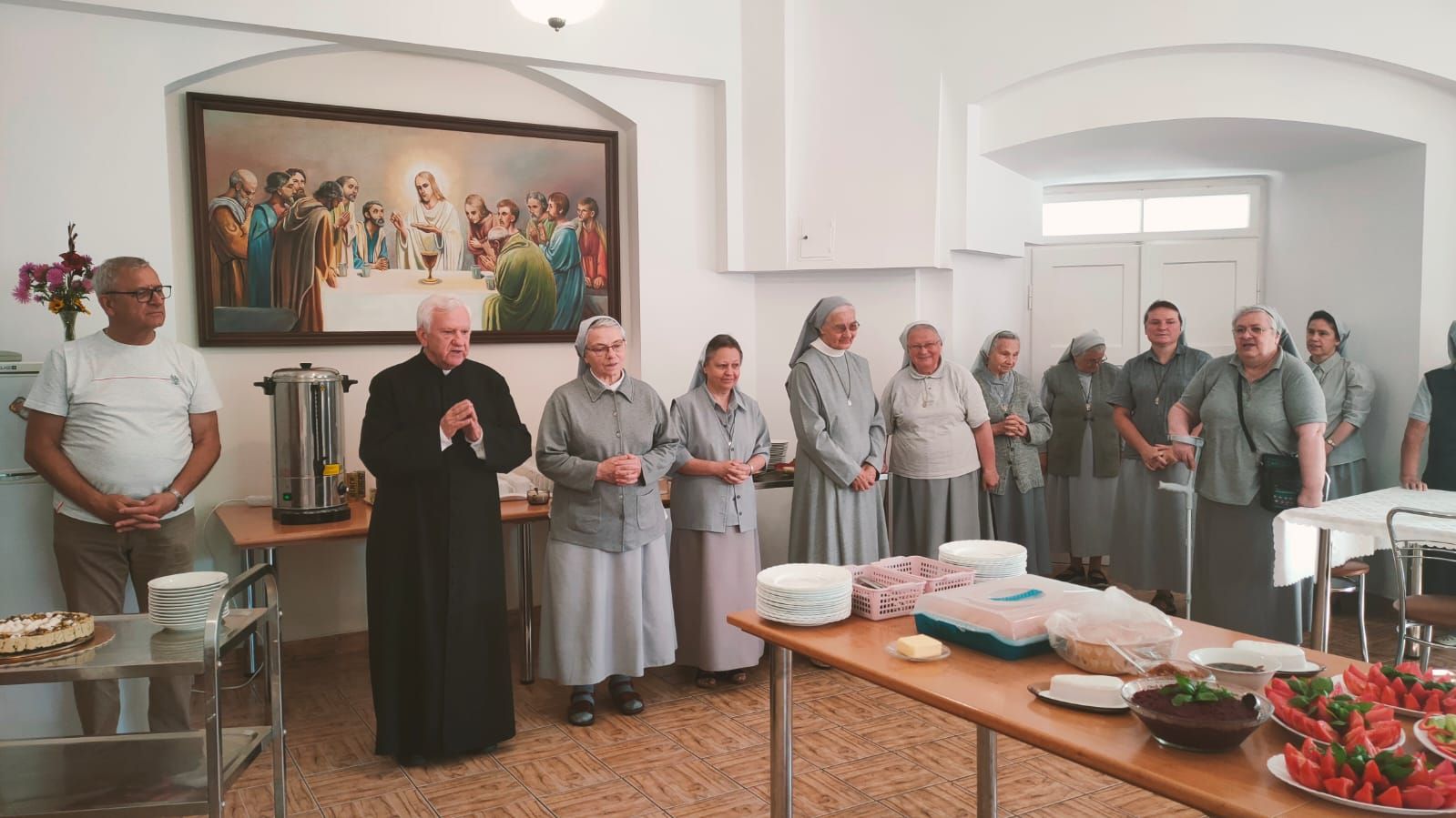 Po Mszy Świętej przyszedł czas na życzenia i radosne spotkanie przy wspólnym stole. Nie zabrakło także tortu