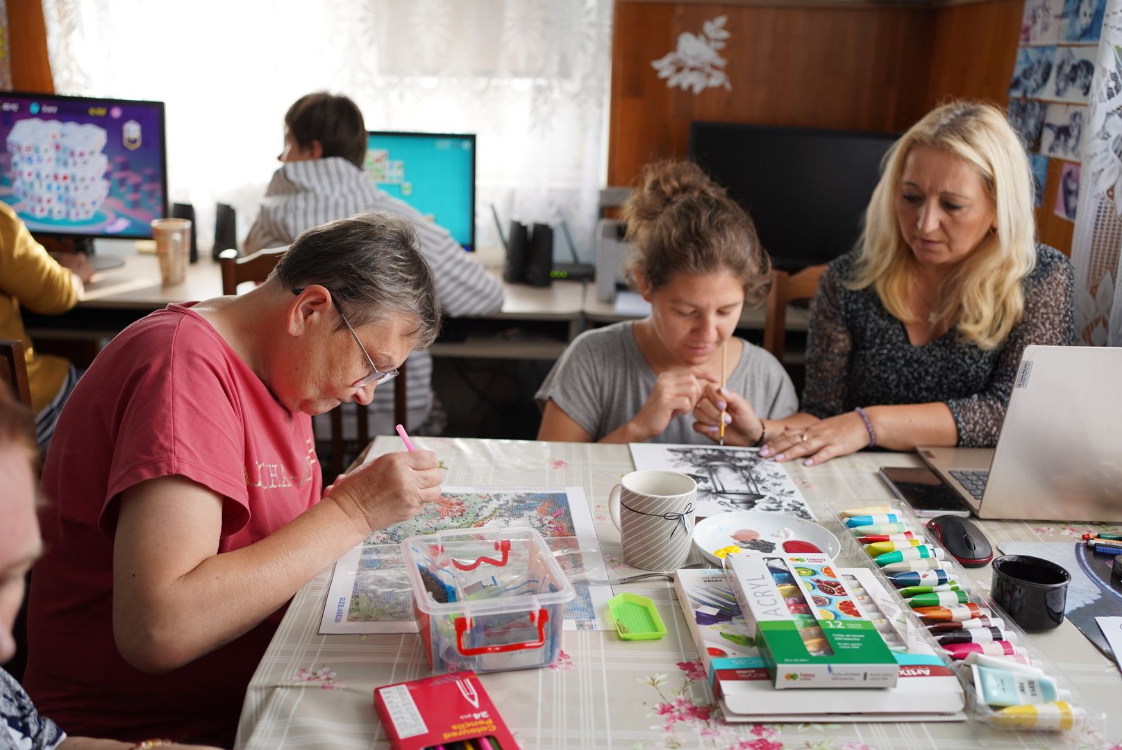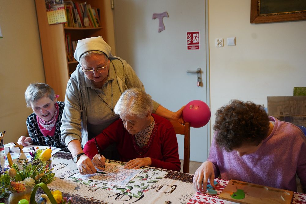 Mieszka w nim 50 wspaniałych dziewcząt i kobiet niepełnosprawnych intelektualnie. Tej niepełnosprawności często towarzyszy niepełnosprawność fizyczna. Dlatego niektóre z nich poruszają się na wózkach lub większość czasu spędzają w łóżkach.